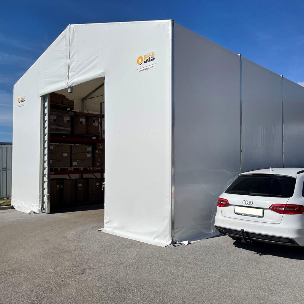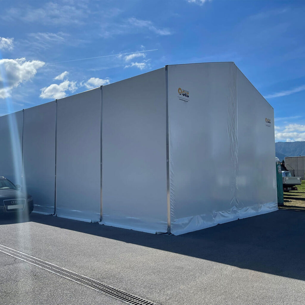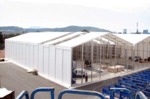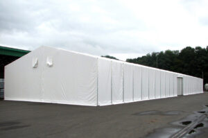 Der größte Vorteil von Industriezelten ist die sehr schnelle Montage, Mobilität und lange Lebensdauer.