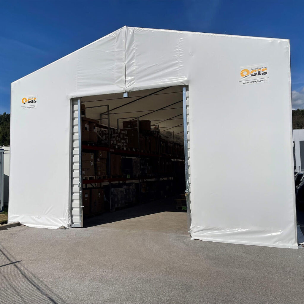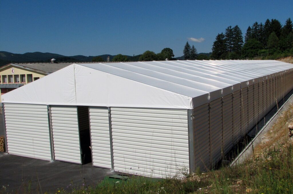 Eine robuste Konstruktion aus Aluminiumprofilen und feuerverzinkten Stahlbindungen ist eine solide Basis des Objektes, die je nach Verwendungszweck und Verwendungsart als Industriezelt mit unterschiedlichen Seitenabdeckungen verwendet werden kann. Es bietet 3 verschiedene Arten von Objekten, um Einsatzbereiche abzudecken, von normalen Lagereinrichtungen bis zu wärmeisolierten Produktionsstätten.